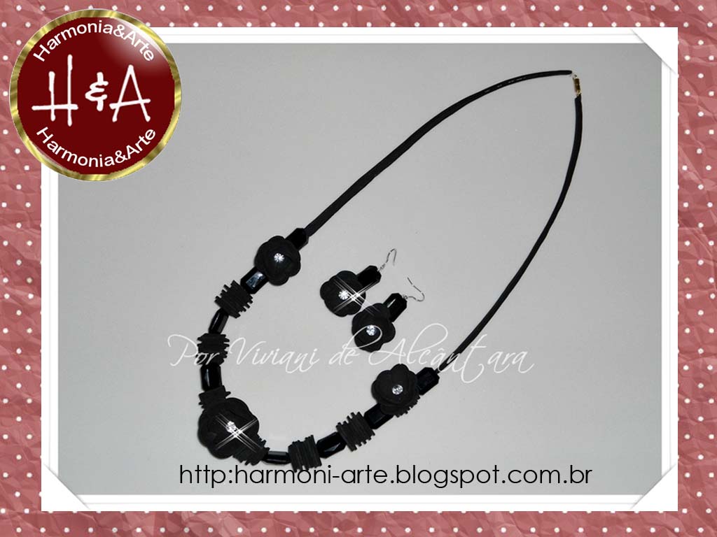 Conjunto Colar e Brincos Pretos em E.V.A